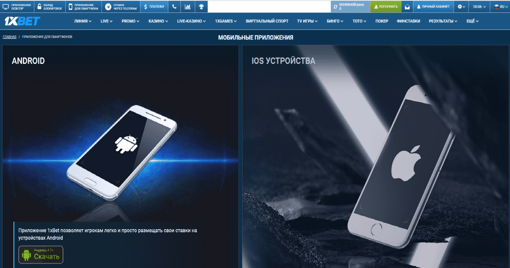 Делать ставки, просматривать матчи можно не только на основном сайте. Компания предлагает мобильную версию сайта 1хбет. Она запускается на любом устройстве в браузере, внешний вид ничем не отличается от десктопного варианта. Однако существует ещё более удобный вариант — скачать 1xbet приложение. Его предлагают установить сразу с сайта, оно работает на устройствах Android и iOS. Дизайн программы имеет упрощенную форму, где есть самые основные функции и разделы. При этом искать рабочее зеркало игрокам не придется. Используя мобильное приложение, Вы никогда не столкнётесь с проблемой блокировок основных доменов БК.